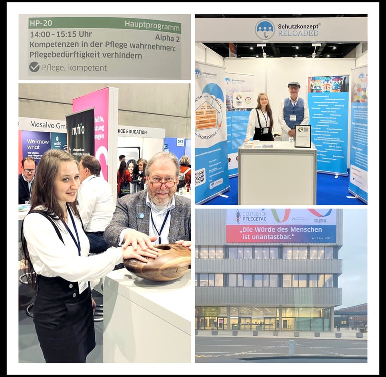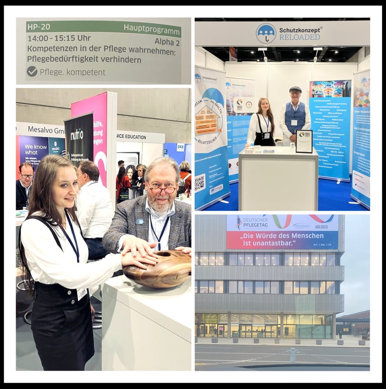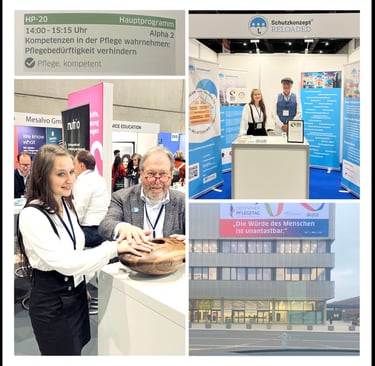 Dort angekommen, ging es direkt zu unserem Stand, wo ich zusammen mit meinem Kollegen, Andreas Schrenk, unser Schutzkonzept Reloaded für die Einrichtungen der Altenhilfe vorstellen konnte. Der Tag war voller inspirierender Gespräche und neuer Eindrücke. Besonders bereichernd war der Austausch mit anderen Ausstellern und engagierten Fachkräften aus der Pflegeberatung – eine großartige Gelegenheit, zu netzwerken und gemeinsam neue Ideen für die Zukunft zu entwickeln.